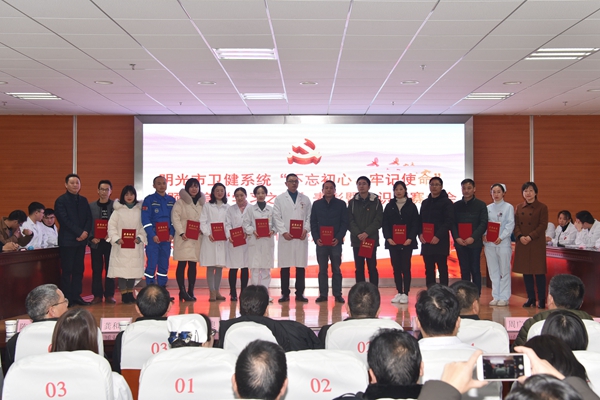 为深入开展“不忘初心、牢记使命”主题教育,贯彻落实党的十九大,十九届三中、四中全会精神,营造浓厚的学习氛围,发挥先进典型的示范和引领作用,2019年12月30日下午,由明光市卫健委主办的全市卫健系统“不忘初心、牢记使命”主题教育“学习之星”表彰会暨知识竞赛活动在明光市人民医院行政综合楼十楼举行。