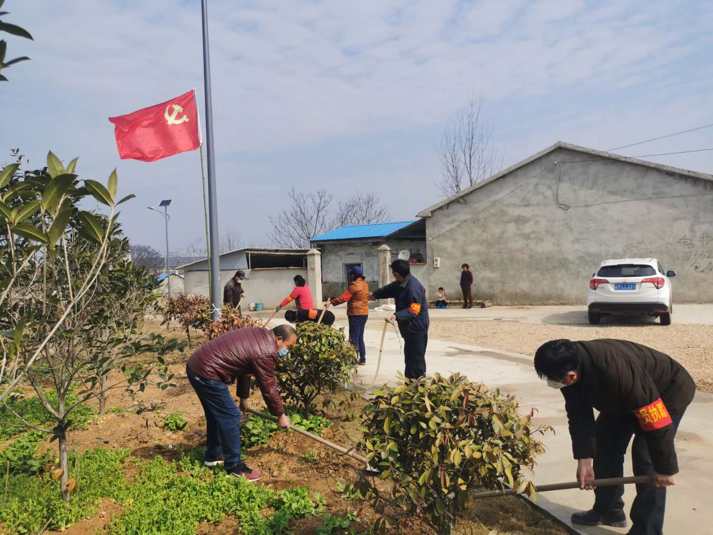 党建引领,激活生态建设动能。组织开展各村互相学习活动,每月保证互相学习8余次,查找3个差距,整改5个方面,推动生态建设、美丽乡村建设见效落地。结合疫情防控工作,坚持党组织引领,稳步推进人居环境整治,推进自然村庄“五清一改”,广泛动员党员干部群众,打扫家前屋后,清理杂树草垛,营造全员参与、群防群控的工作氛围。推进厕所革命,邀请专业技术人员下村指导打造改厕样板。强化道路沿线整治提升,党员每日带头整治104国道两侧乱停放车辆200余辆。全面开展道路沿线美化绿化工程,带领群众种植树苗300余棵,引导群众转变发展思路,促进一二三产业融合。