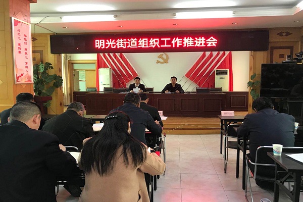 4月22日下午,明光街道召开组织工作推进会,会议由党工委书记吴光荣主持,组织室全体人员、18个村(社区)党总支书记、副书记、组织委员参会。