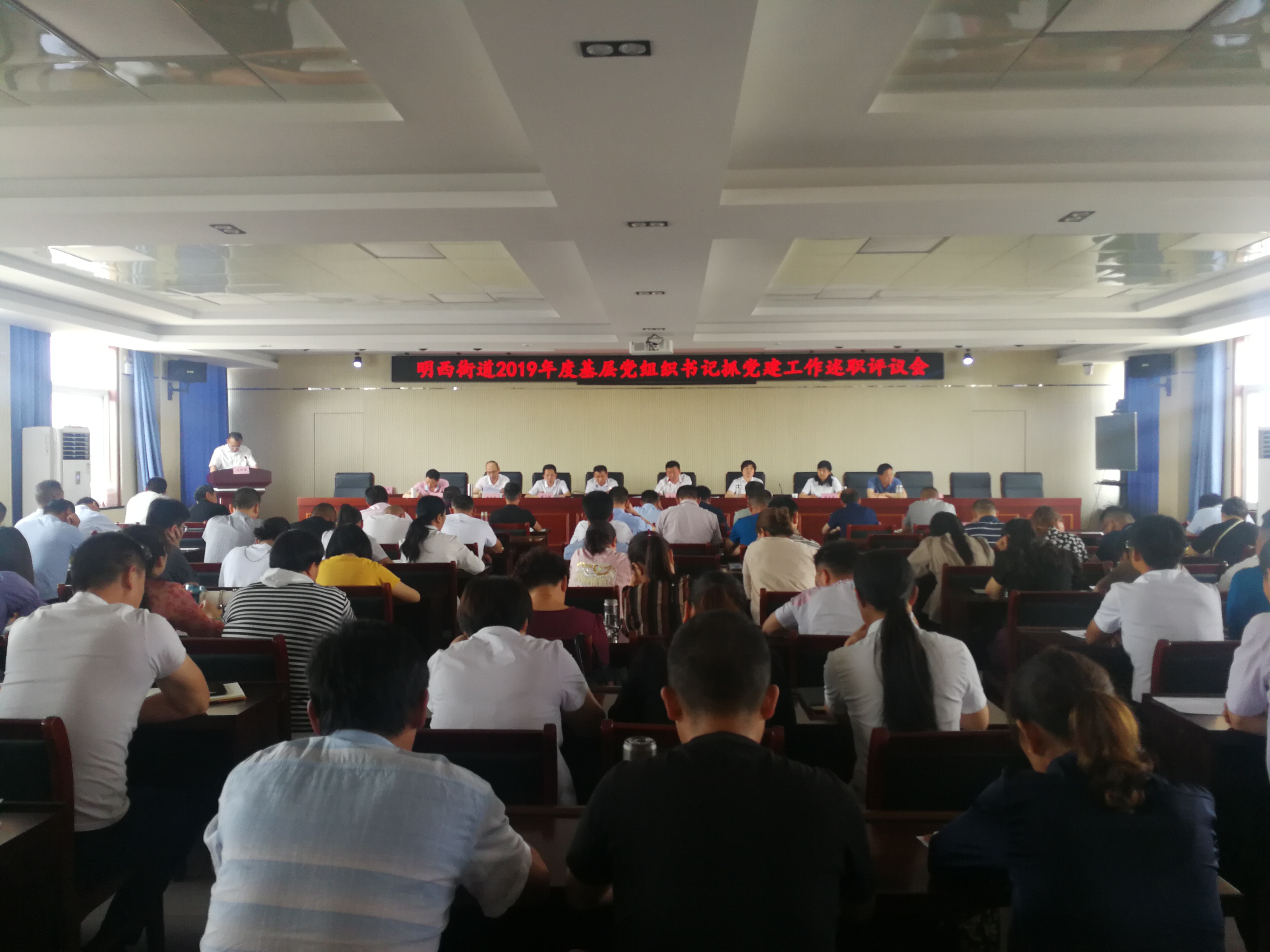 5月27日上午,明西街道组织召开2019年度基层党组织书记抓党建工作述职评议会议,街村全体干部、机关单位及非公党组织书记、部分两代表一委员共130余人参加会议,会议由明西街道党工委书记陈士军主持。