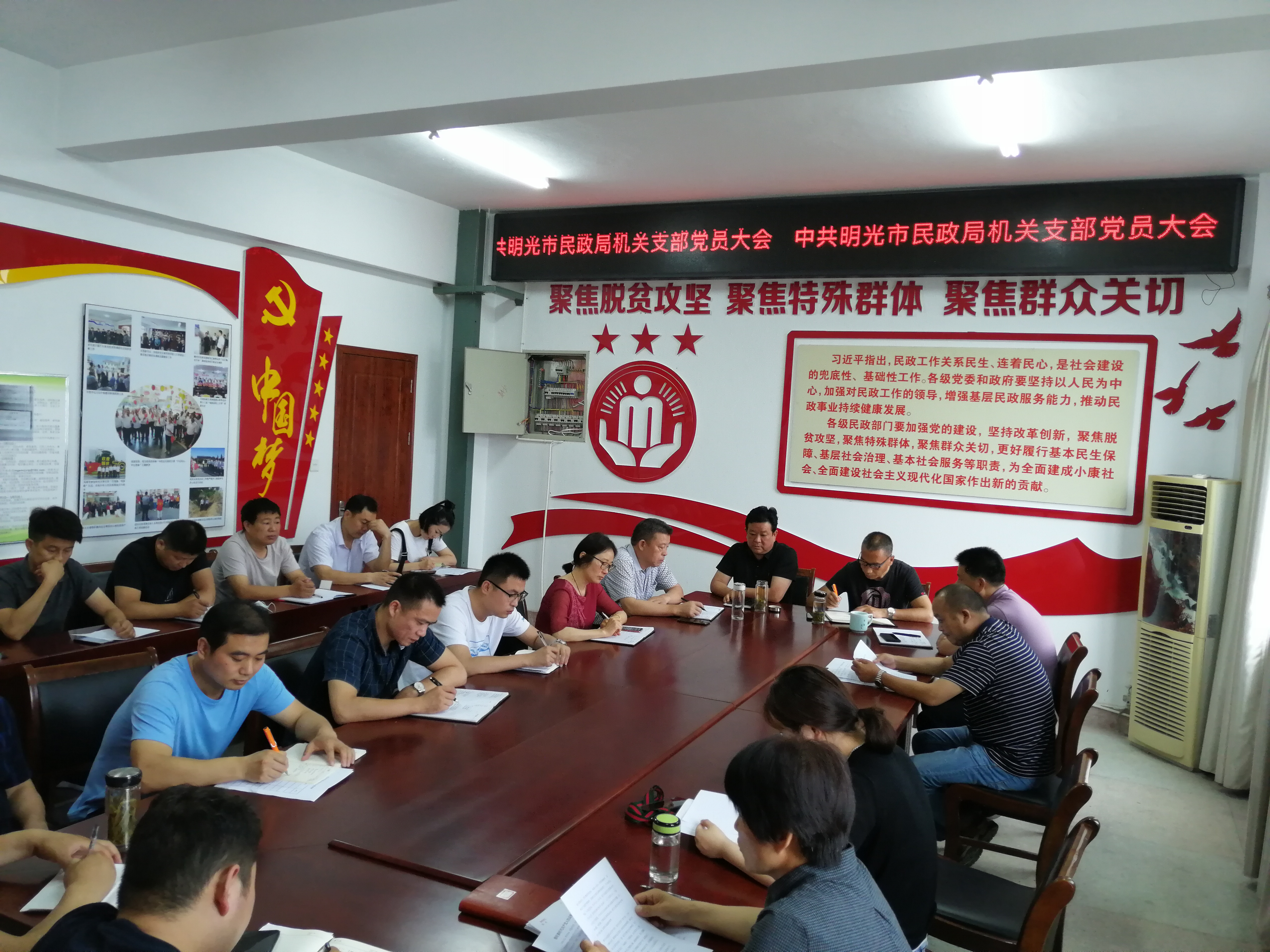 6月12日,市民政局机关党支部召开党员大会,会议由机关支部书记程序同志主持,机关支部全体党员参会。