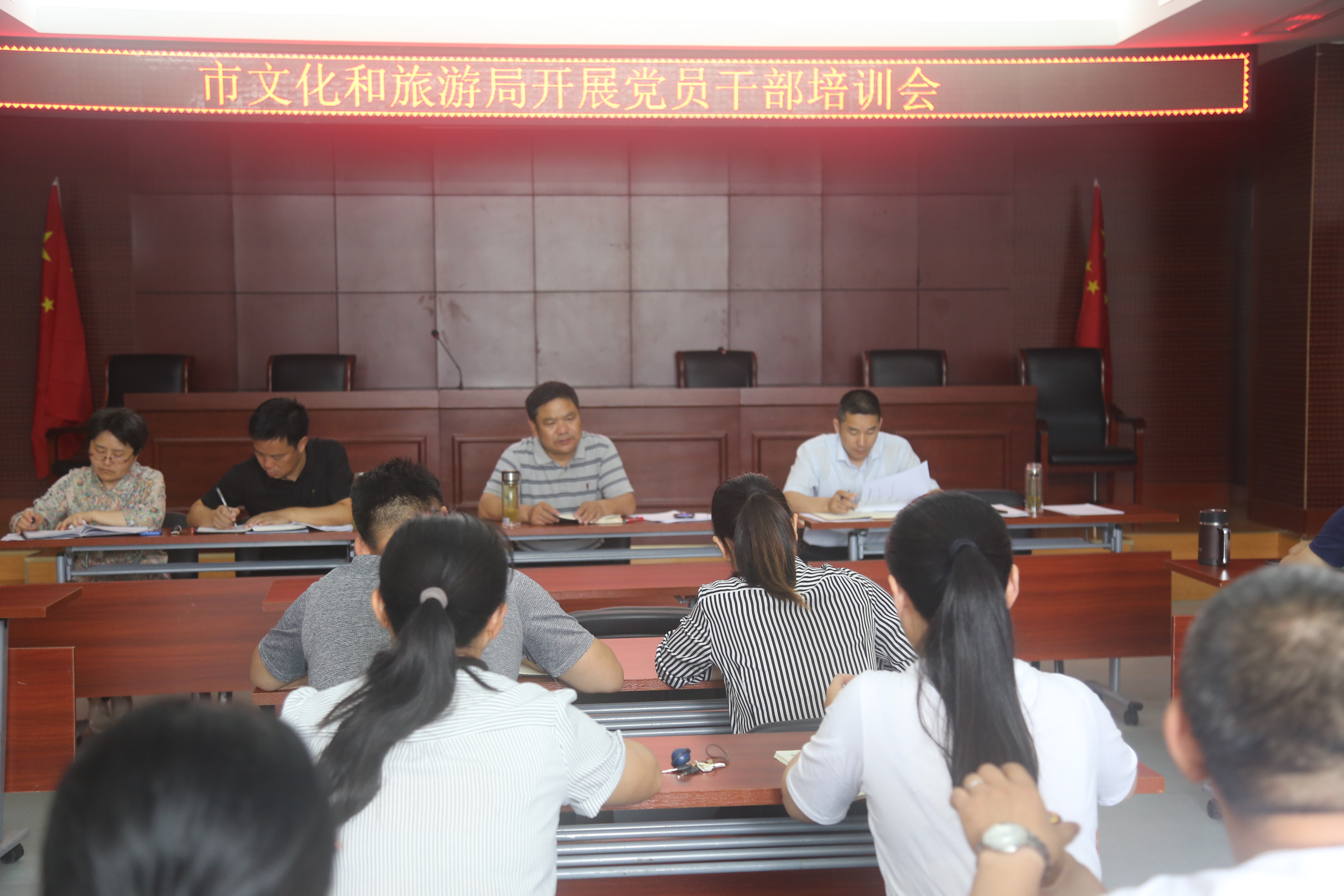 为深入贯彻学习习近平新时代中国特色社会主义思想和党的十九大精神,切实增强“四个意识”、坚定“四个自信”、做到“两个维护”,坚定全体党员的理想信念,凝心聚力,统一思想。6月15日上午,市文化和旅游局召开第二季度党员干部培训会,局领导班子、局机关支部党员、预备党员及积极分子参加会议。