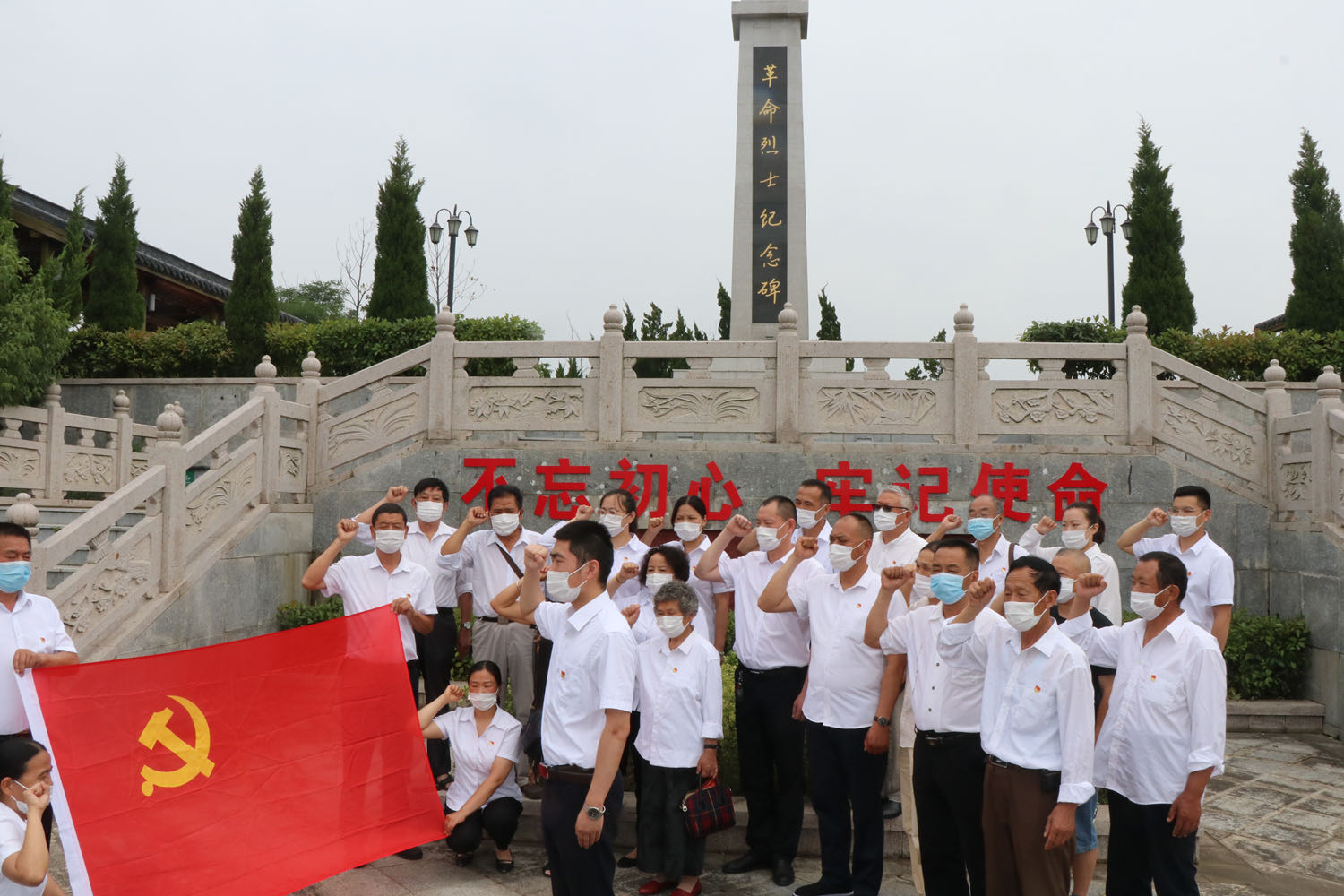 在严集烈士陵园,全体党员、共青团员在革命烈士纪念碑前方肃立,党员代表向革命烈士敬献花篮,深切地追思革命先烈的丰功伟绩。接着,在鲜红的党旗下,党员同志们庄严地举起右手,握拳宣誓,重温入党誓词。牢树“为共产主义事业而奋斗”的坚定信念。
