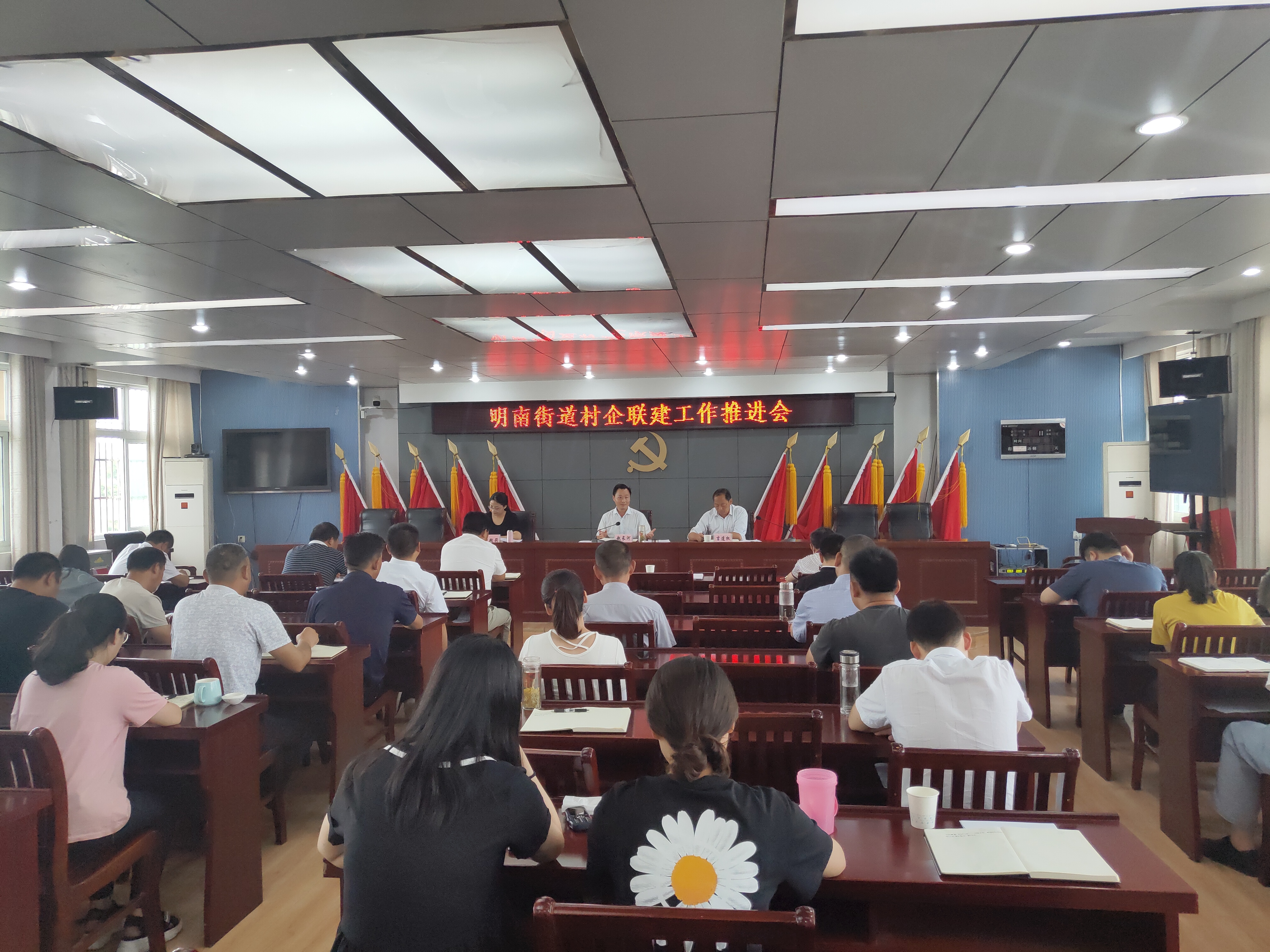 为深入落实滁州市村企联建电视电话会议精神,加速推动联建工作落实落地见成效。6月24日上午,明南街道召开村企联建工作推进会,会议由党工委副书记、办事处主任赵长河主持,联系村班子成员、各村党总支书记、党建业务人员参加会议。