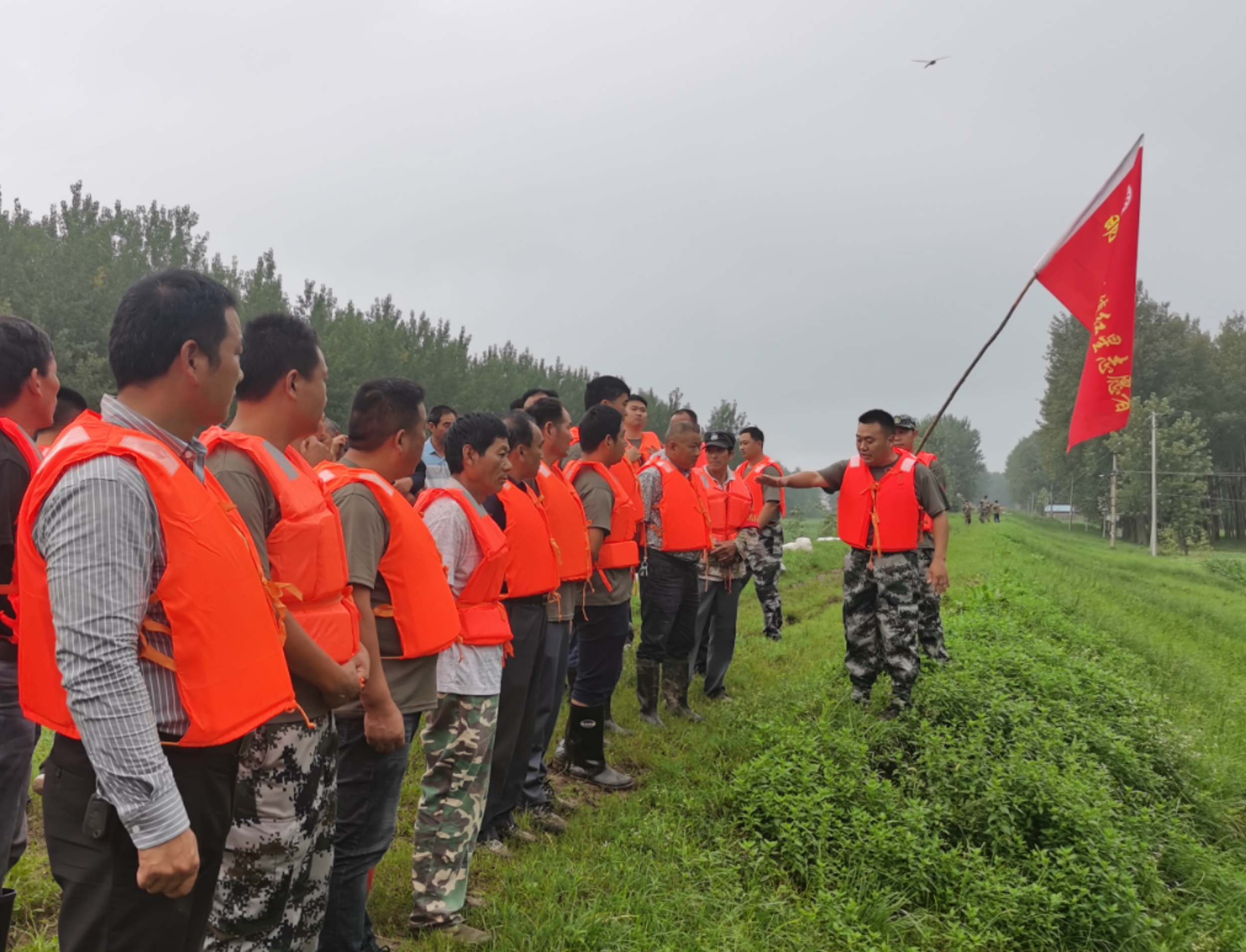 高擎党旗,筑牢防线。涧溪镇300名镇村干部在党委书记卞齐国带领下,在潘村镇对苏堤大坝进行加固,抵御洪水,守护家园。上下一心,用热血、用汗水、用身躯、用信念,用实际行动诠释了“乘风破浪、拼拨进取”的涧溪力量。