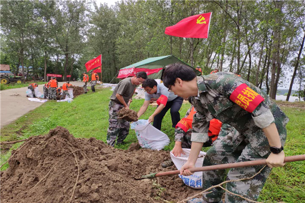 队伍有信仰,使命放心上。面对紧急情况,抢险救援闪电突击队勇挑重担,齐心协力、不畏艰难,担负起堤段巡查、清障排险、搬运物资、除草防浪等防汛抗洪各项工作中,充分发挥党员先锋模范作用,成为防汛抗洪“主心骨”。在中淮点引河处发现险情,突击队紧急赶往,搬运防汛物料300根、沙包500袋,成功建起一条围堰,并于抢险结束后继续严守岗位,助力防汛工作。