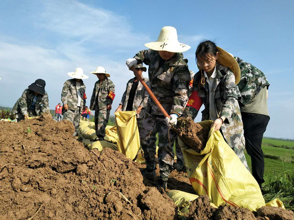 在长长的堤坝上,多的是晒伤的皮肤,汗水迷痛的双眼,也偶有累瘫在那的身躯,但更多的,是那些坚守的挺拔身姿。突击队的队伍很长,因为身着迷彩服,每个人都是一抹绿色,在那鲜绿中比那草绿还要迷人,令人心动。一片翠绿之中又有着鲜红在飘扬,那是党的旗帜在给我们指引方向,作为一名中共预备党员,吴旻感觉心里充满了力量。正是对社会主义核心价值观的生动实践,因为有着热爱祖国的共同情愫,所以我们能够团结在一起,众志成城便能抗击洪水猛兽。