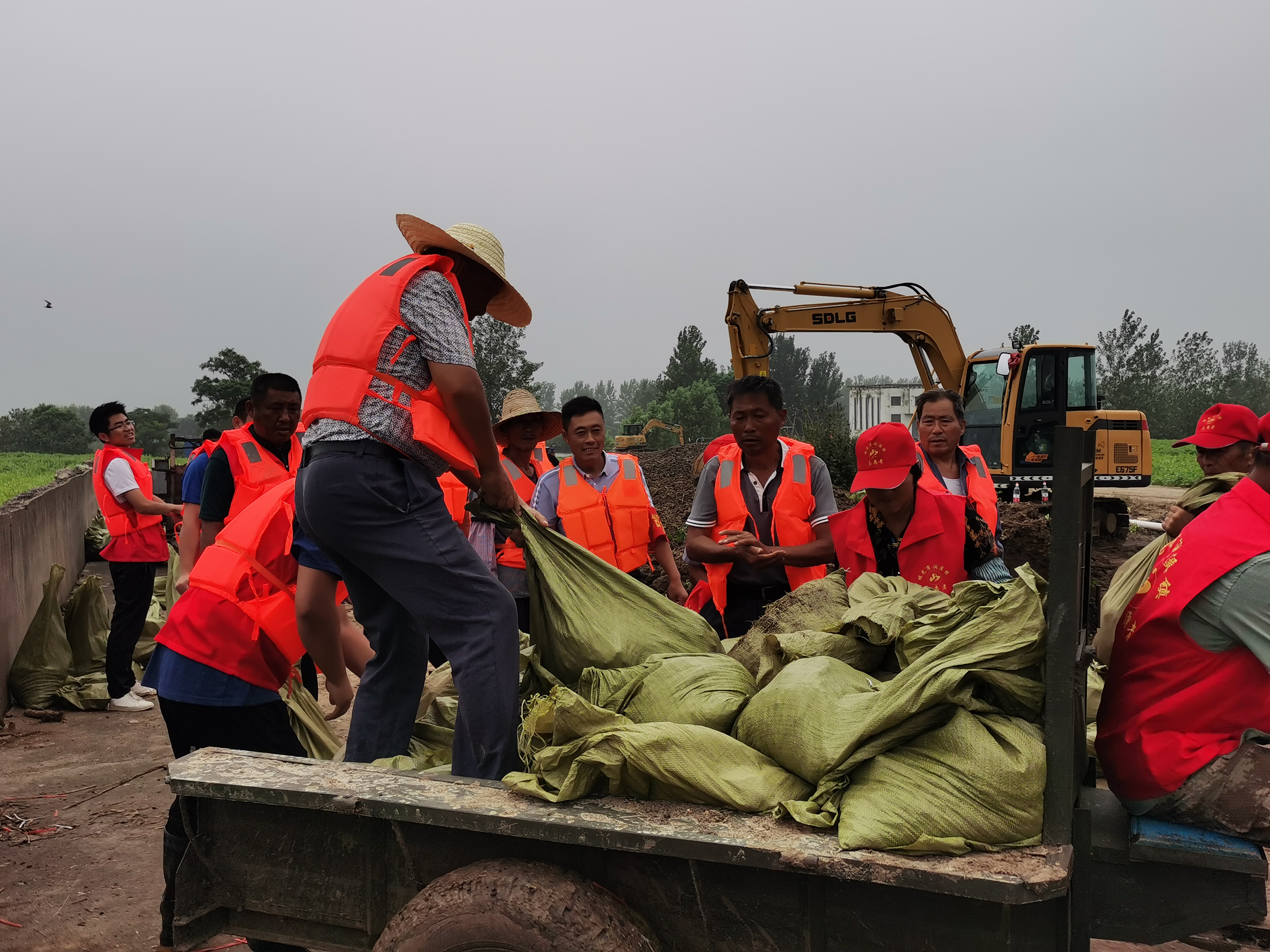 在清除堤坝杂草的同时,也有一群人在为堤坝抢险,有开着自家农用车的,有带着自家工具的,有的更是带上了自己的爱人、亲戚、朋友,在抢险中献出自己一份力量。现场有一对夫妻正在相互协作着,他们正是姜恒俊、马培芹夫妇,马培芹是九塘村卫计专干,在抗洪抢险紧缺人员的时刻,她把她的爱人姜恒俊带到了一线共同参与抗洪抢险,白天夫妻俩灌沙石包、搬运木材,晚上轮流值守站岗,连续数日坚守岗位,他们舍小家顾大家的奉献精神,为九塘村广粮圩抗洪抢险增添了浓墨重彩的一笔。