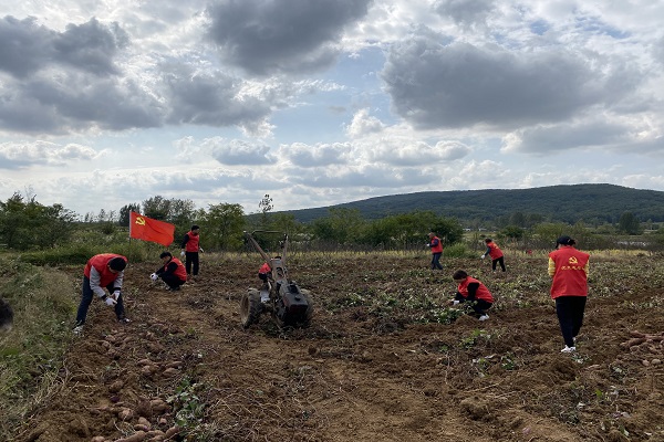 10月14日上午,村党总支组织党员开展“助力贫困户秋收”主题党日志愿者服务活动。二十余位党员志愿者来到贫困户的山芋田里进行抢收。志愿者们分布其间,两两配合,挥汗如雨,抢收工作如火如荼,忙碌的身影构成了一幅美丽的秋收画卷。一个上午的时间,6亩山芋成了一堆堆紫彤彤的小山。“谁知盘中餐,粒粒皆辛苦”,一年的秋收是贫困户辛苦整年的劳动成果,也是重要的收入来源与生活保障,林圩村党总支联合帮扶单位明光市场监督管理局开拓销售渠道,将抢收下来的山芋及时卖出了8000余元。当志愿者们将钱放在贫困户戴本义的手上时,他激动的说:“非常感谢村党组织,要不是大家的帮忙,我的山芋就要烂在地里了,我都不知道该怎么感谢好了!我会积极劳动,努力脱贫!”