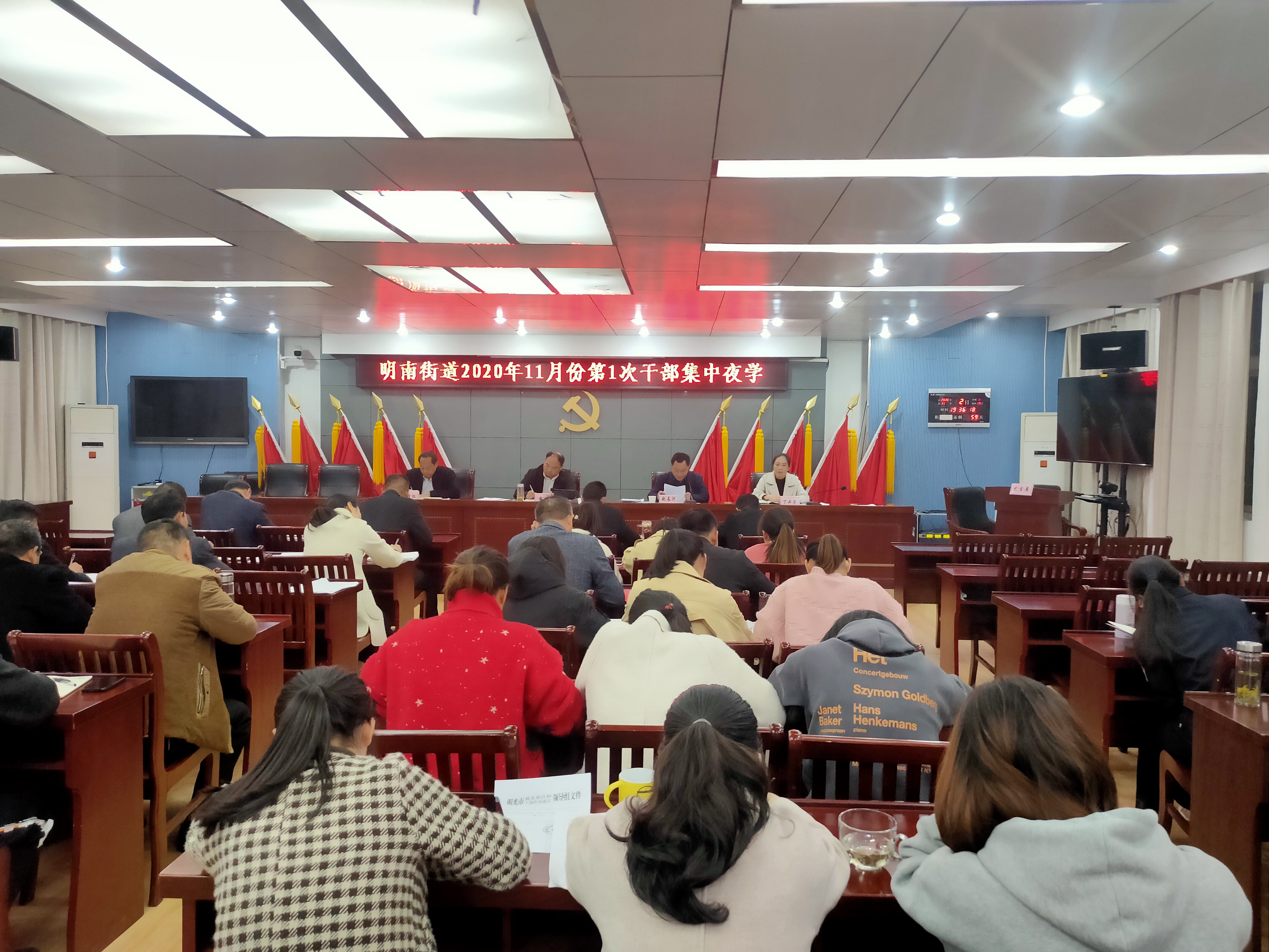 11月2日晚,明南街道召开2020年11月份第1次干部夜学,全体街道干部参加学习。