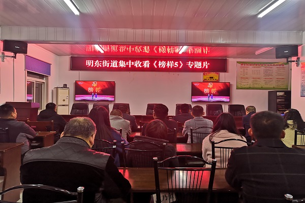 3月22日晚,明东街道街、村干部收看《榜样5》专题教育片,通过聆听感人事迹,接受精神洗礼。