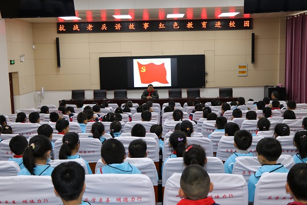 4月20日,明光市明湖学校少工委邀请参加过中越自卫反击战、荣获三等功嘉奖的退伍老兵冯家春开展“抗战老兵讲故事 红色教育进校园”党史教育。
