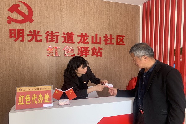 做好事还可以攒积分,用积分还能在社区的“爱心超市”兑换东西,我觉得太好了!”2021年4月30日,明光街道龙山社区居民来到龙山社区中央广场红色驿站,签字领取积分兑换券。