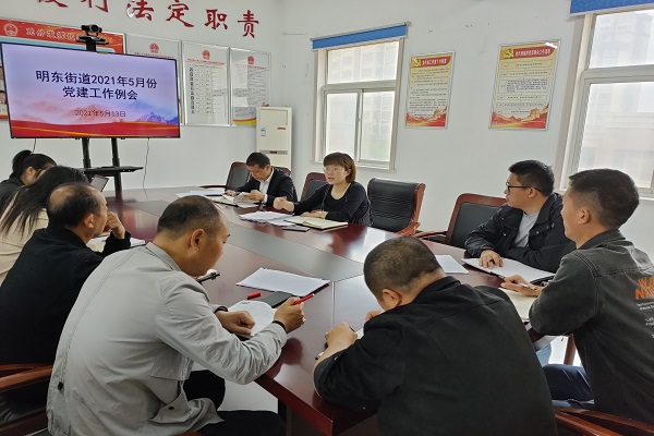 5月13日上午,明东街道召开5月份党建工作例会,党工委组织委员张金玉主持会议,街村(社区)党务及纪检工作者参会。