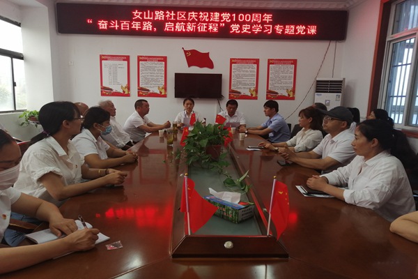 为庆祝中国共产党成立100周年,回顾党的光辉历程,讴歌党的丰功伟绩,女山路社区开展庆祝建党100周年“奋斗百年路 启航新征程”党史学习专题党课。