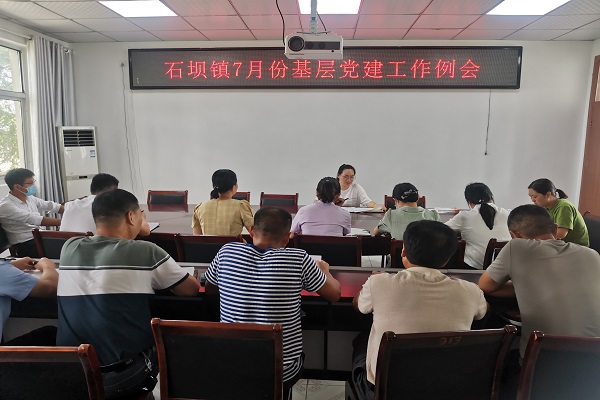7月22日下午,石坝镇召开7月份基层党建工作例会,党委组织委员高洁主持会议,13个村党务工作者、机关以及事业单位党组织党务工作者参加会议。