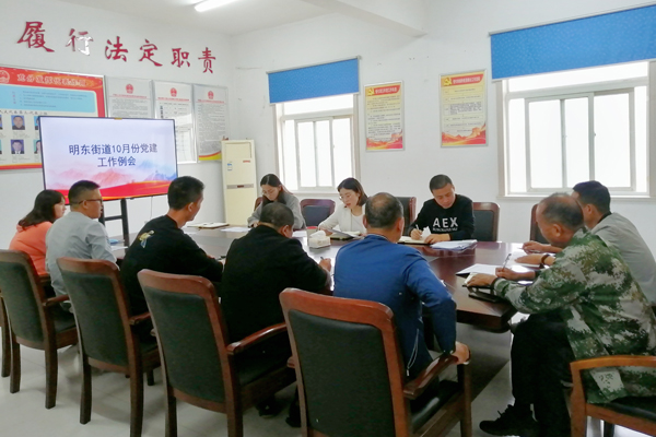 10月9日上午,明东街道召开10月份党建工作例会,会议由党工委组织委员张金玉主持,街村(社区)党务及纪检工作者参会。