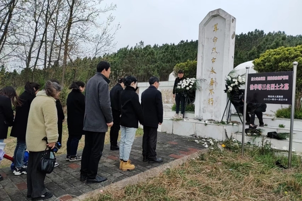 为深切缅怀革命先烈丰功伟绩,弘扬烈士革命精神,在清明节来临前夕,明光街道黄郢社区组织党员干部到紫阳烈士陵园开展“缅怀革命先烈 传承红色基因”主题党日活动。
